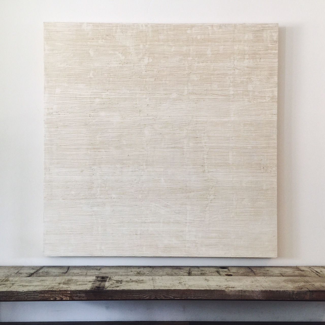 wax + oil paint on wood panel. 60 x 60 in.